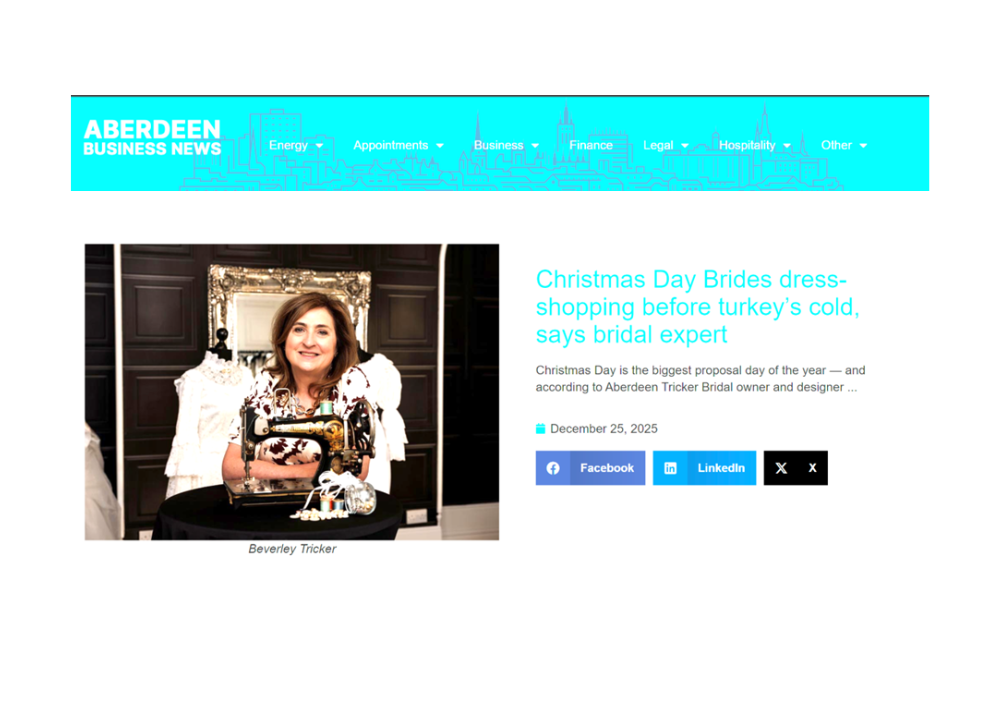 Read Beverley's advice for Christmas Day proposals and when to start wedding dress shopping here on Aberdeen Business News.