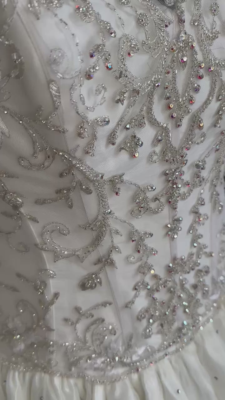 In good wedding-ready condition, with the possibility of a few missing beads, Belle Amour is still every inch the showstopper. She’s for the bride who wants to feel like royalty, revel in sparkle and isn’t afraid of a bit of drama."
