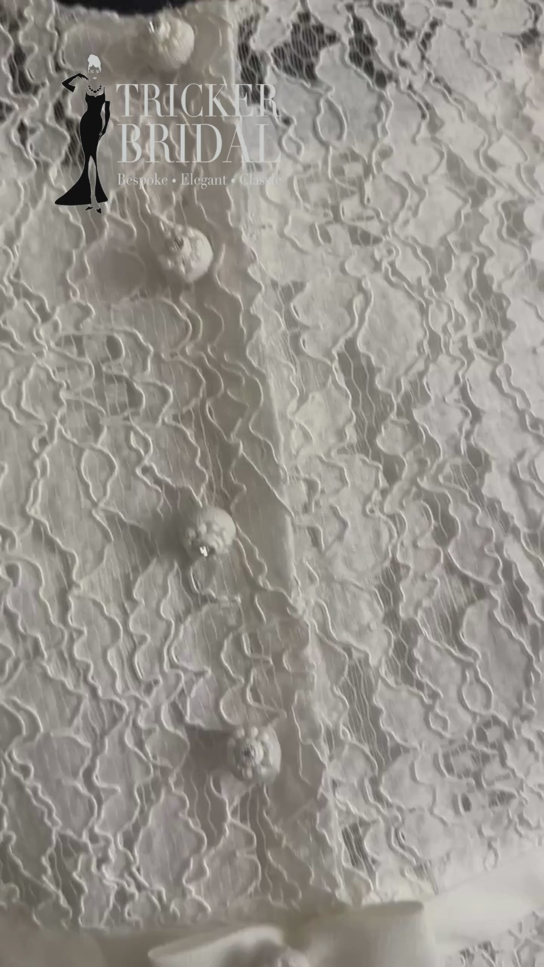 Crafted from delicate corded lace in a soft, pale ivory, this full-length bridal coat is pure 1960s sophistication. It fastens with a row of the most darling spherical buttons—each one topped with lace and a glint of diamanté - super cute.