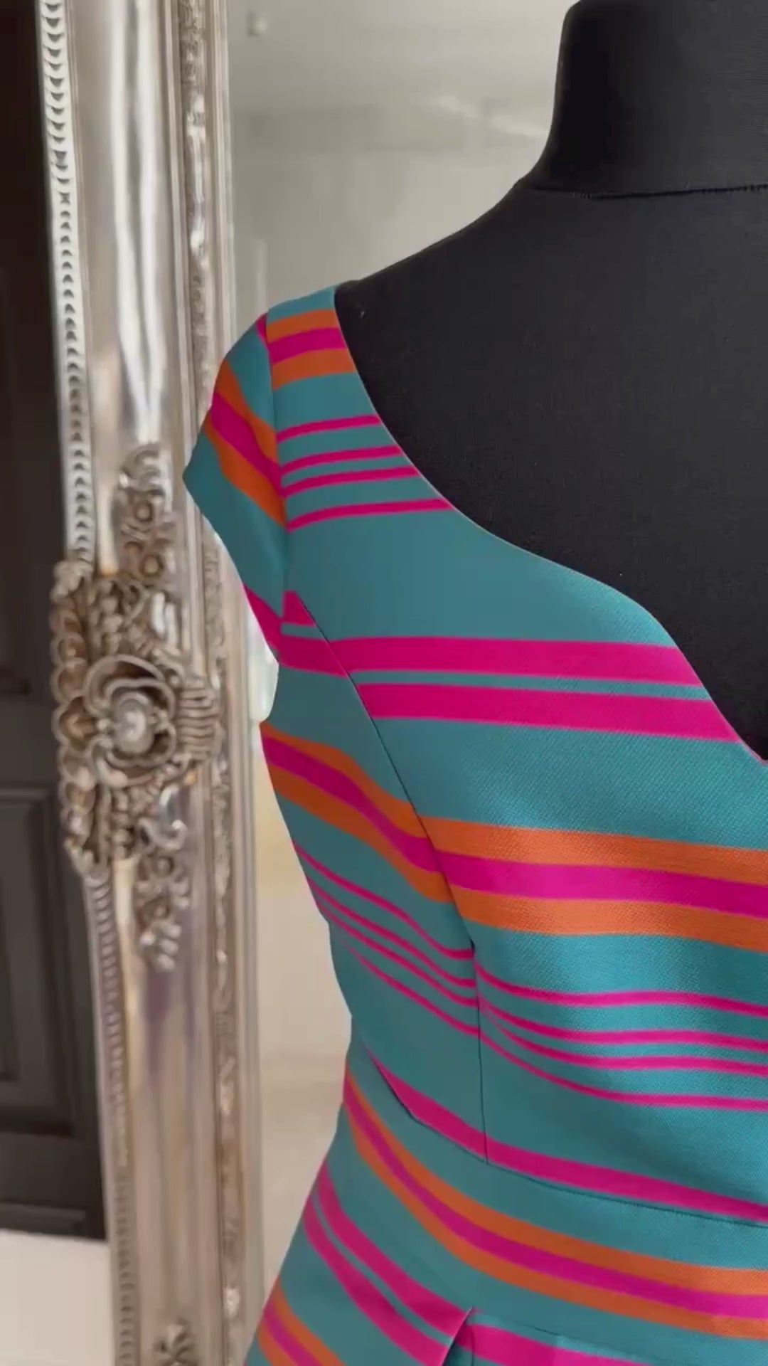 This one shouldn’t work… but oh, it absolutely does. A riot of bright pink, teal and burnt orange stripes sounds like something you’d only see on a 1960s beach parasol — yet somehow it all comes together in a way that feels joyful and flattering.