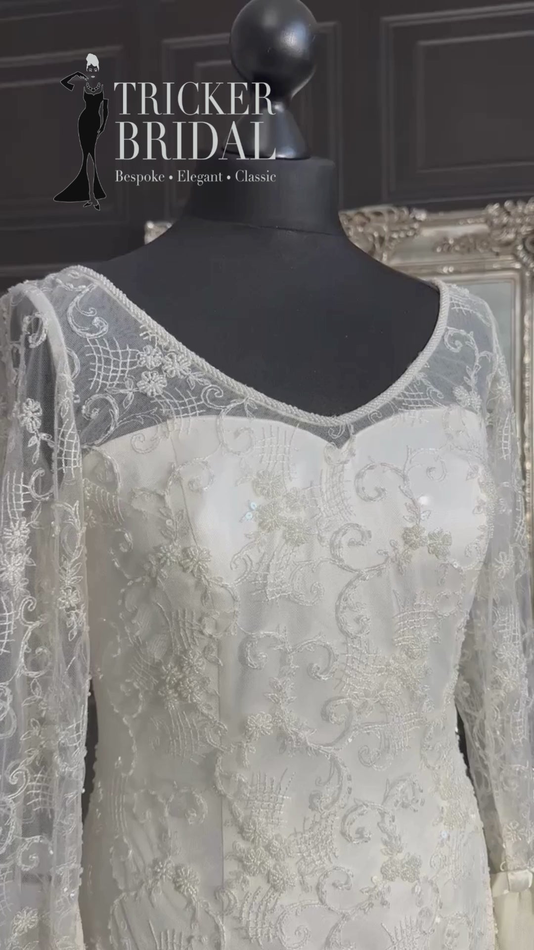 A sample dress in excellent condition, ready for her very first Stevie-inspired walk down the aisle.
