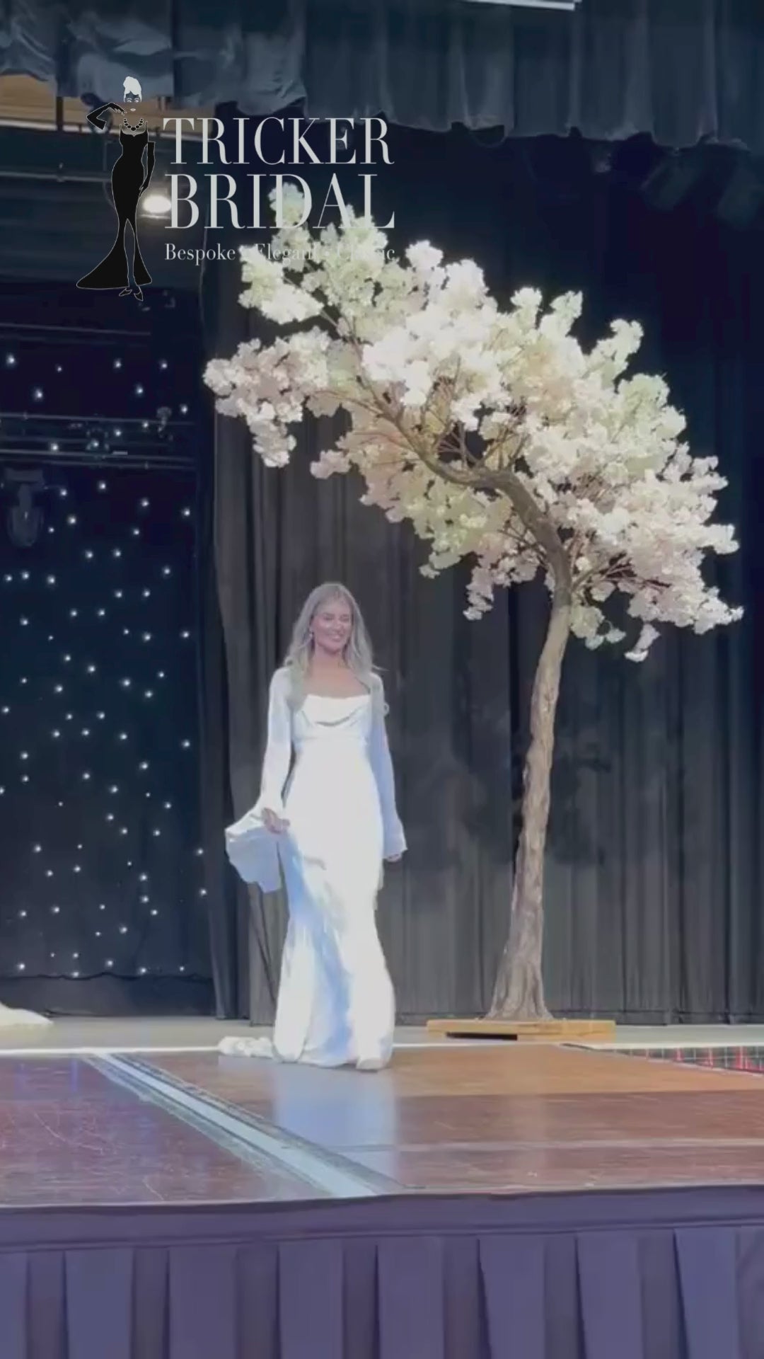 And the sleeves are the real spell: floaty angel sleeves with medieval-inspired drapes that beg for a dramatic swish, whether through a candlelit castle or simply down the aisle. Every detail carries Ian Stuart’s signature couture finish – structure, balance and the ability to make a true entrance.