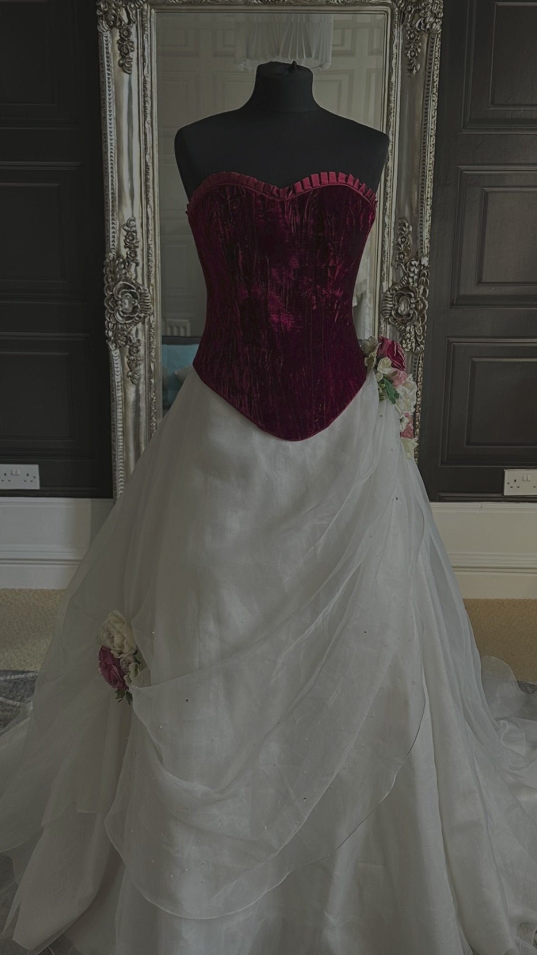 She’s never been worn and is in immaculate sample condition - just a slight colour change under the arm which is unseen when worn– a true gem of the Déjà Vu collection. Whether you’re planning a magical woodland ceremony, a winter Christmas wedding, or leaning into full steampunk drama, Wine and Roses delivers romance with a bold edge.